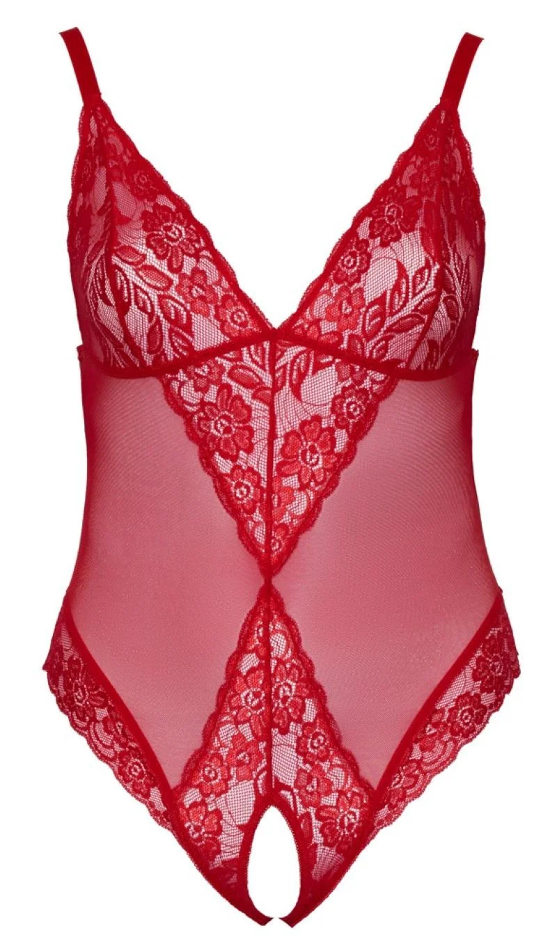Bodysuit mit offenem Schritt - Rot
