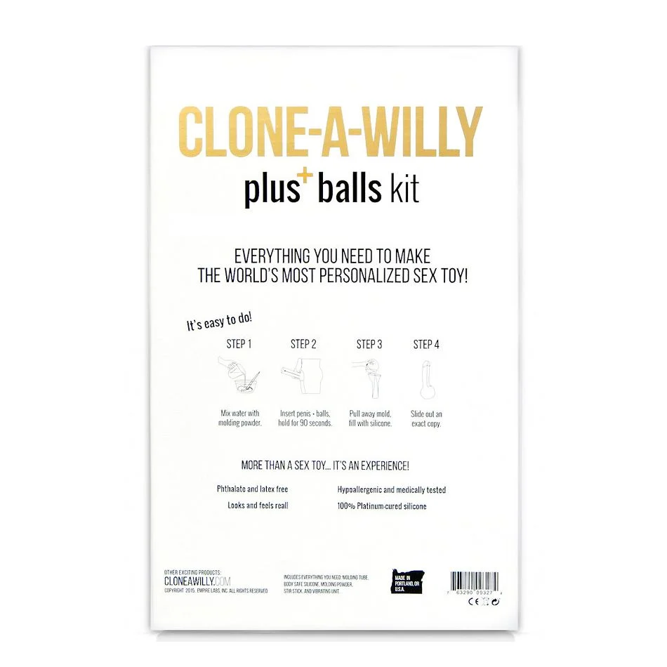 - Beschreibung Mit dem Clone-A-Willy Kit Including Balls verwandelst du einen intimen Moment in ein kreatives Projekt für zuhause. Dieses Komplettset ermöglicht es dir, ganz einfach eine lebensechte, vibrierende Nachbildung eines Penis mit Hoden herzustellen. Ob als verspieltes Paarerlebnis, persönliches Geschenk… Mehr
