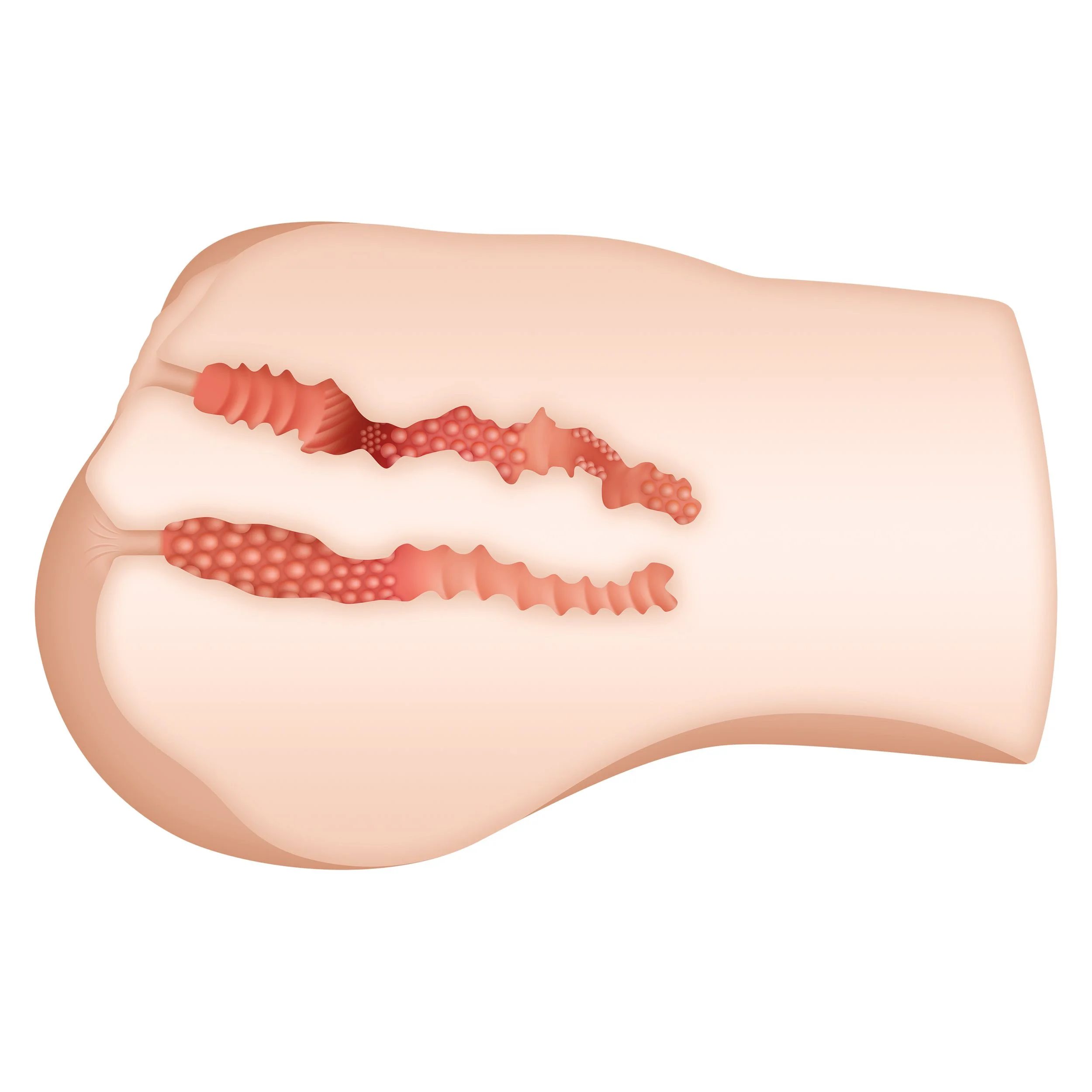- Kleine Schamlippen Leicht gewellter Tunnel Gerippte Innenstruktur Mit G-Punkt Liegt gut in der Hand