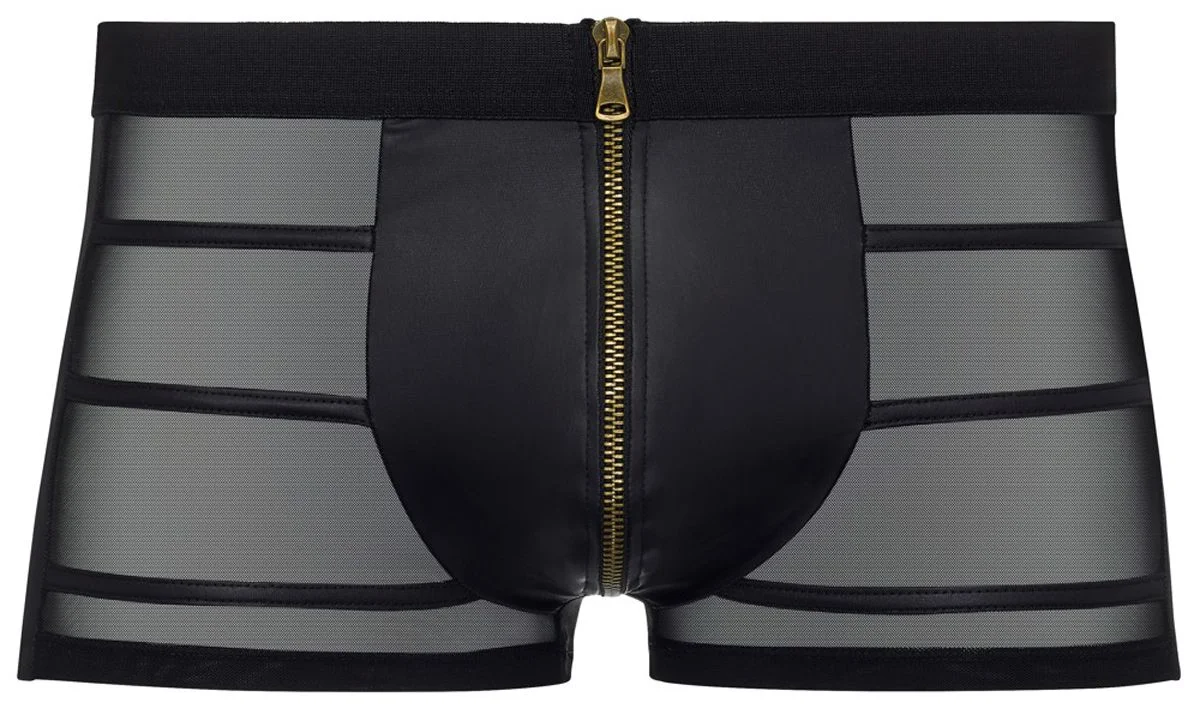 Staat mooi! Stoer en ook heel goed voor hetero mannen, ondanks mesh en leatherlook. Moet wel laag op de heupen worden gedragen, dat maakt een hoop uit voor hoe hij valt!