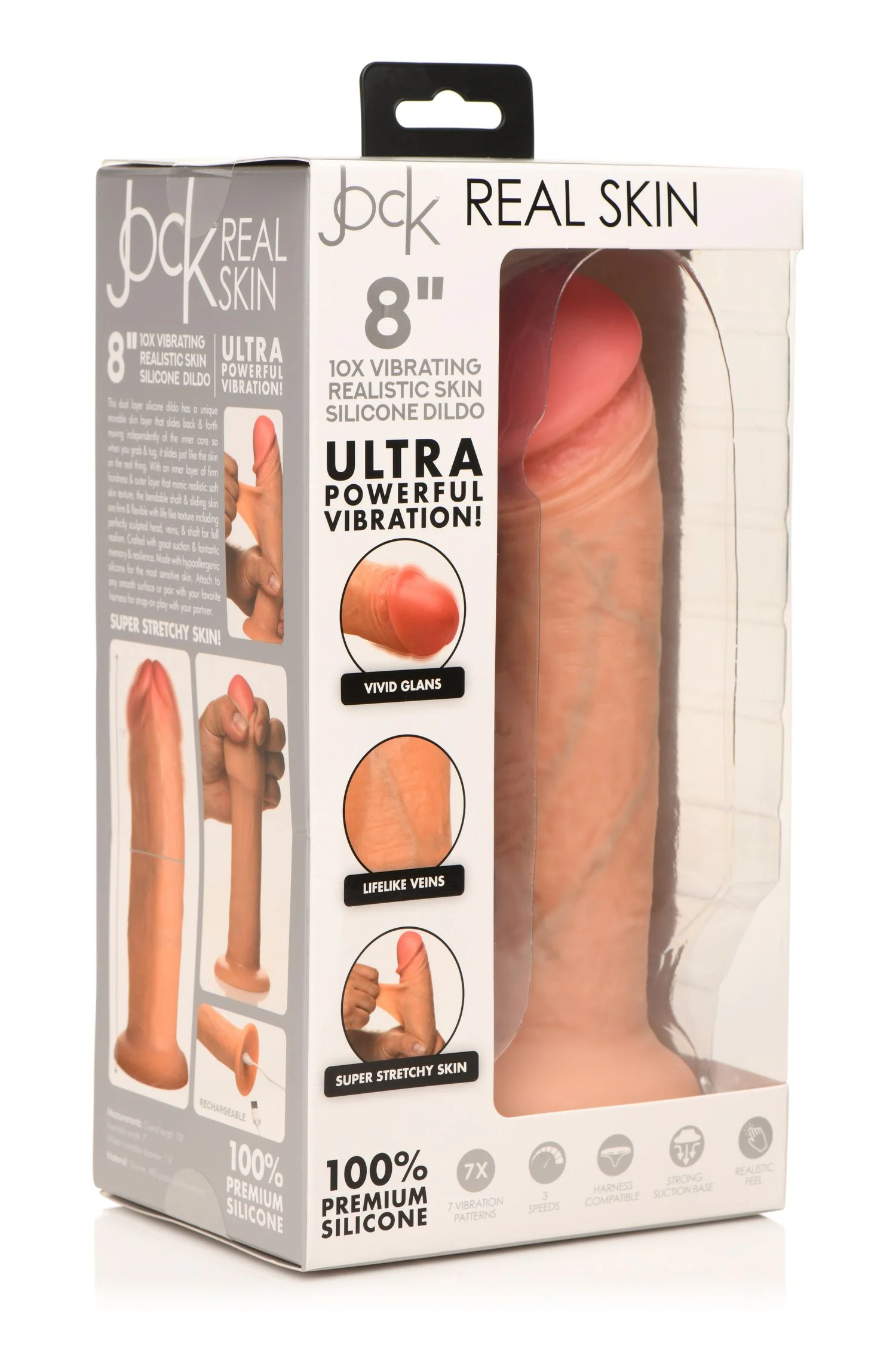 - Beschreibung Erlebe realistische Lust mit dem JOCK - Real Skin Vibrierender Dildo. Mit einer Gesamtlänge von 20 cm verfügt dieser Dildo über eine weiche, realistische Außenschicht und einen festen Kern für ein natürliches Gleitgefühl. Die handbemalte rosa Eichel, blauen Adern und realistisch strukturierte Hoden… Mehr