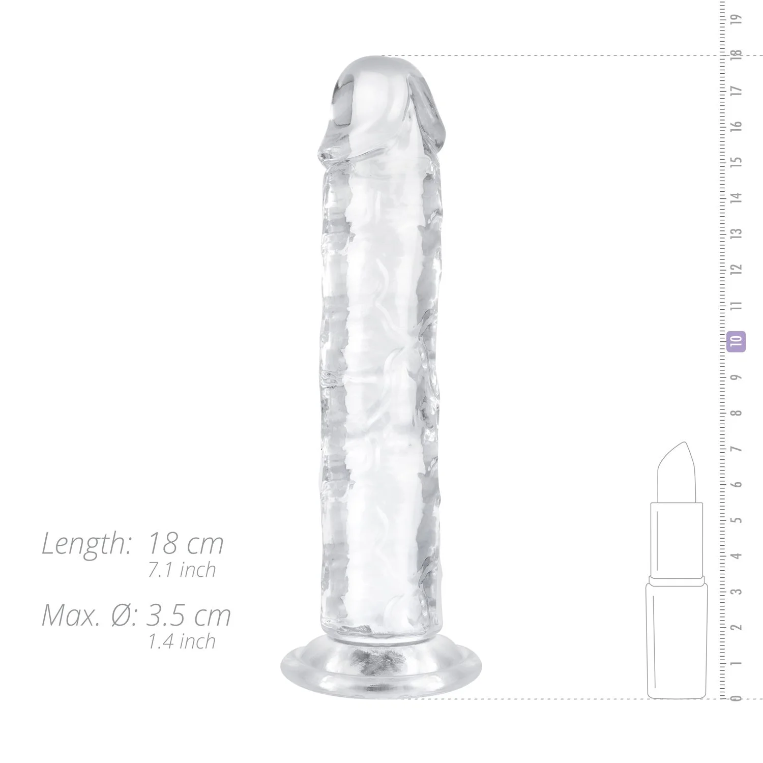Voelt goed, aangename lengte en dikte. Stevig genoeg en toch flexibel. De ribbeltjes voel je ook top. En ziet er ook nog eens leuk uit, zo doorzichtig. De zuignap werkt ook prima.