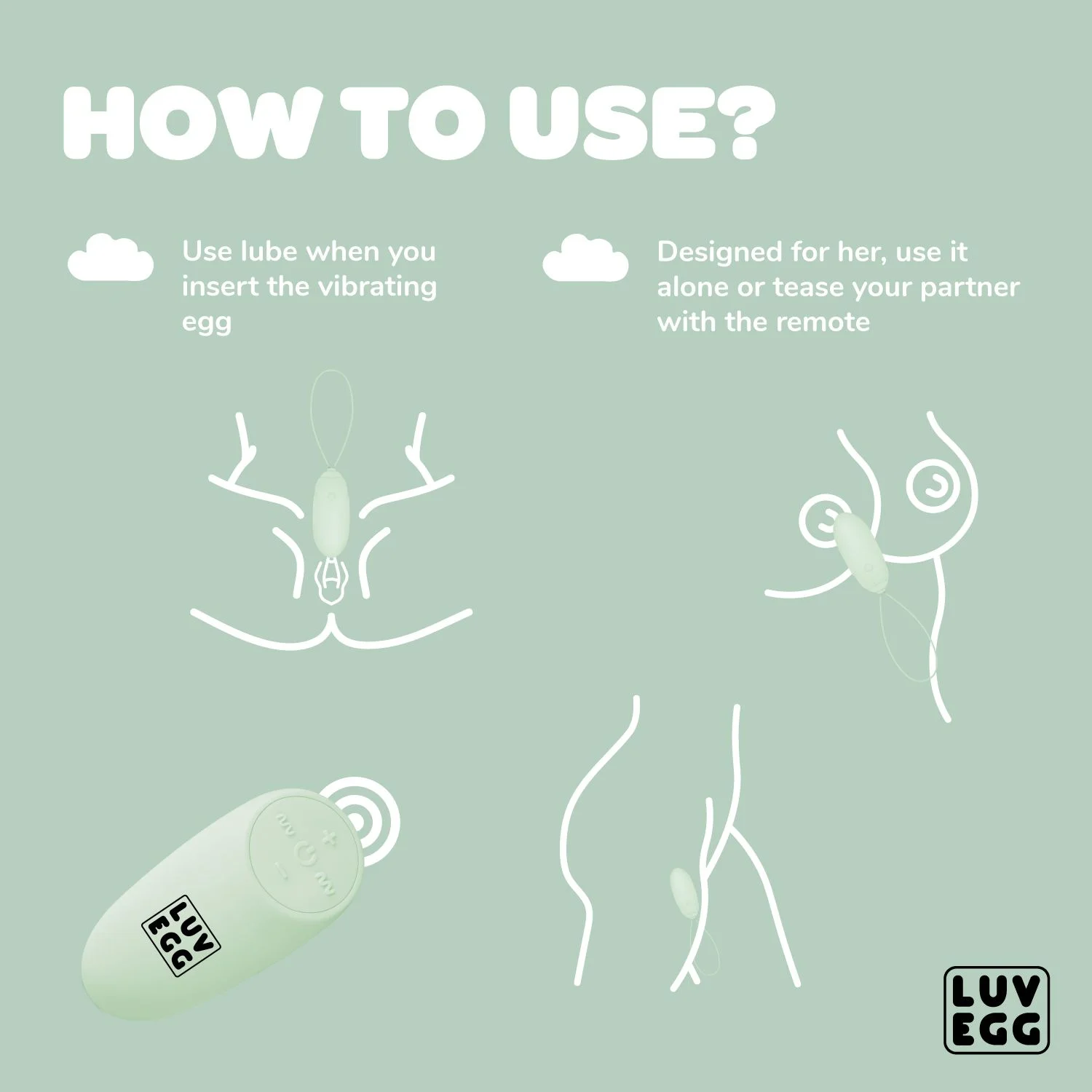 Fordern Sie sich und Ihren Partner mit LUV EGG heraus! Dieses vibrierende Ei mit Fernbedienung ist perfekt für Paare die ein aufregendes Sexspielzeug suchen. Das Vibro-Ei ist in weiches Silikon gehüllt, das für den Körper ungefährlich ist, sich angenehm auf der Haut anfühlt und gründlich gereinigt werden kann. LUV EGG hat einen extra starken Motor mit 12 Vibrationseinstellungen. Das Vibro-Ei ist wasserdicht, wiederaufladbar und kann in Kombination mit wasserbasiertem Gleitgel verwendet werden.