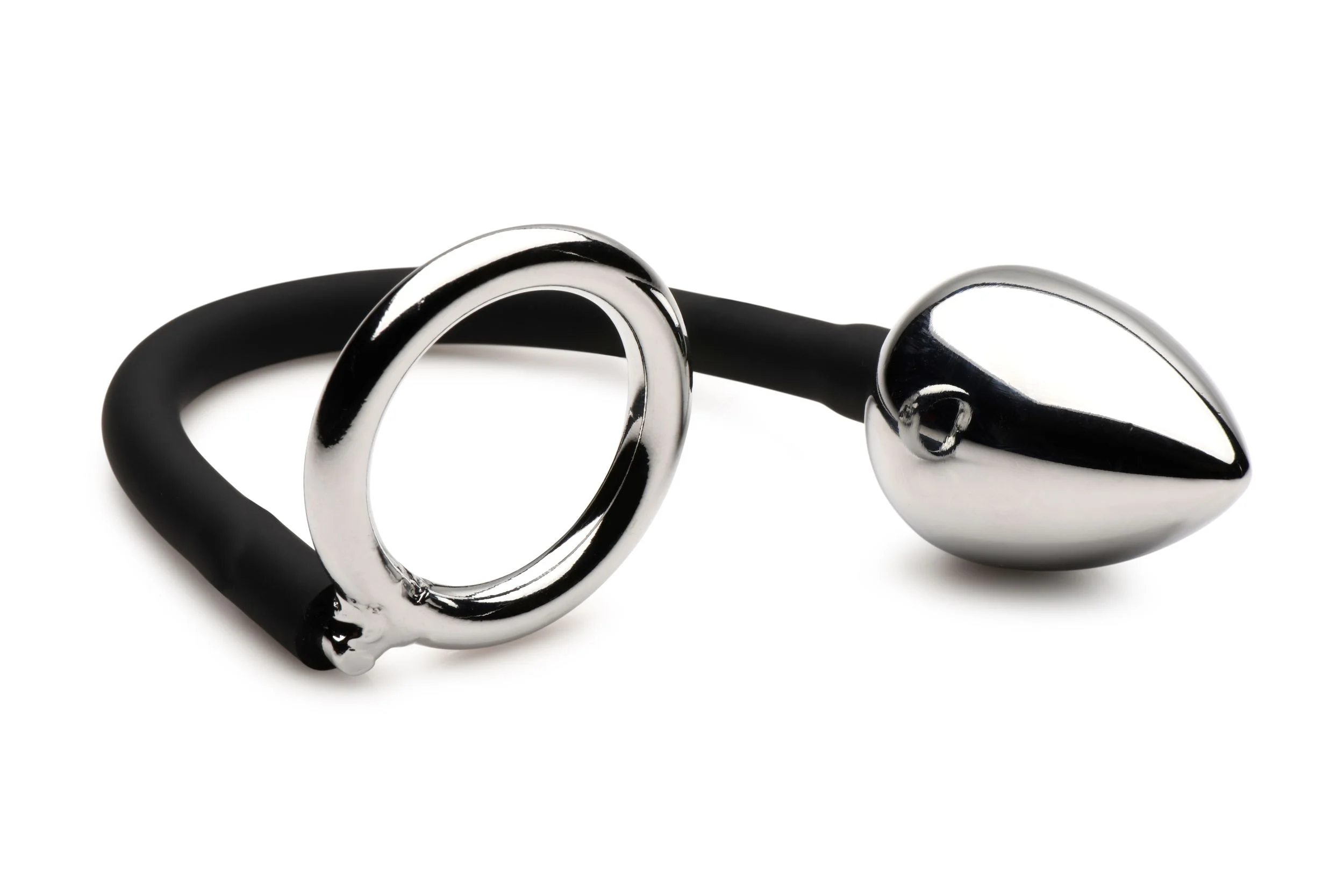 Produktinformationen "Master Series - Tug + Plug Penis- und Hodenring mit Analplug - Schwarz & Si"