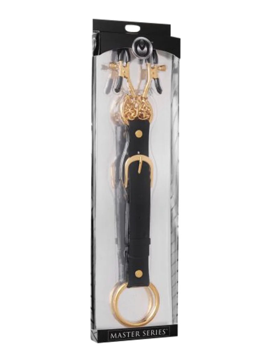 - Beschreibung Umfassen Sie Ihre Nippel mit diesen goldenen Nippel-Klemmen und dem Penisring-Set. Sie erhalten ein Set mit goldenen Nippel-Klemmen und einem Penisring. Die beiden Krokodil-Nippelklemmen sind mit einer Kette verbunden, die auch zum Penisring führt und so eine Y-Form ergibt. Der stattliche Penisring… Mehr