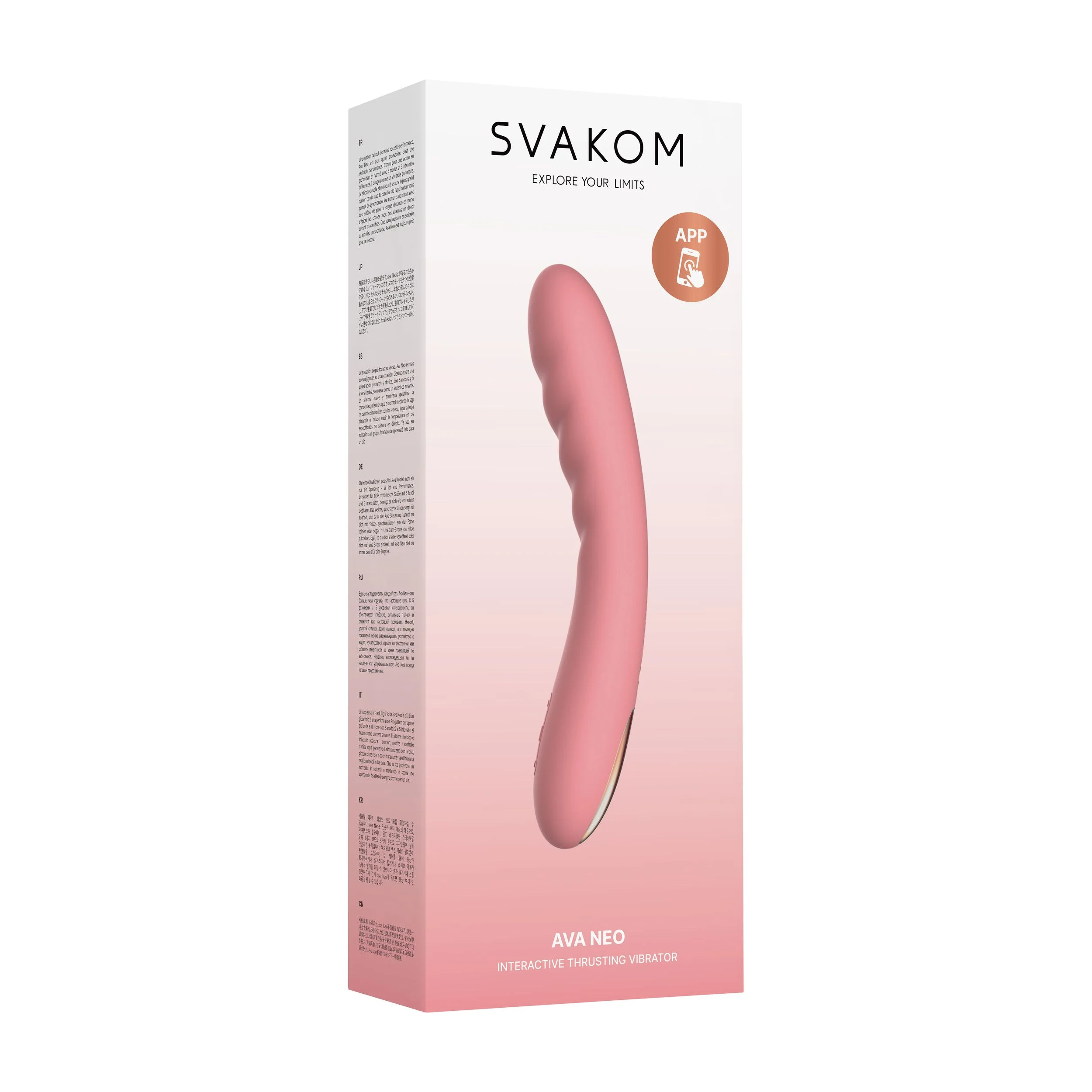 - Beschreibung Lassen Sie sich von Ava Neo in neue Genussdimensionen entführen. Als Teil der Connexion-Serie von SVAKOM bietet dieser app-kompatible Stoßvibrator anpassbare vaginale Stimulation, die sowohl aus der Nähe als auch aus der Ferne gesteuert werden kann. Heben Sie Ihre Spielsessions auf ein neues Level,… Mehr