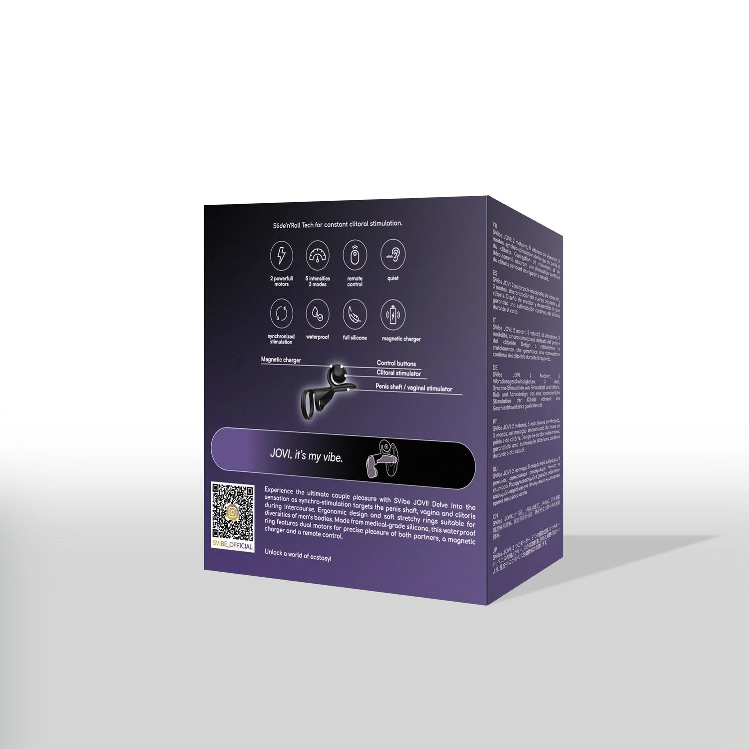 - Beschreibung Erlebe ultimativen Paar-Vergnügen mit dem SVibe JOVI. Tauche ein in eine Welt des Genusses, während die doppelte Stimulation sich auf Penis, Vagina und Klitoris während eurer Abenteuer konzentriert. Das ergonomische Design und die weichen, dehnbaren Ringe bestehen aus medizinischem Silikon. Der was… Mehr