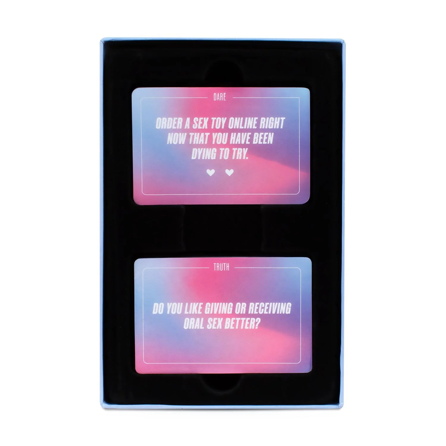 - Beinhaltet sowohl "Truth" als auch "Dare"-Karten für eine Vielzahl intimer Erlebnisse