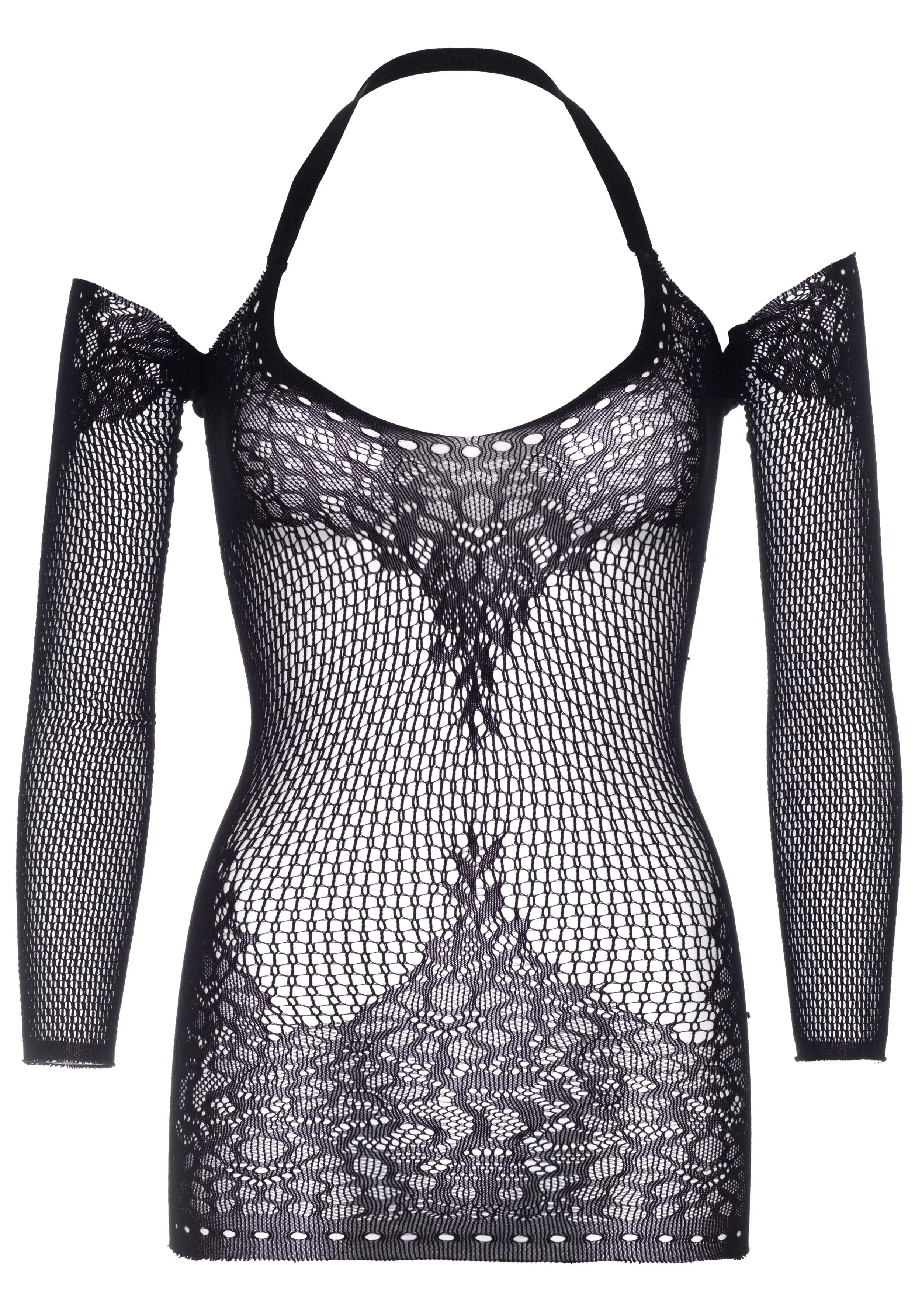 - Beschreibung Das Twist Halterkleid ist ein Minikleid aus Spitze mit langen Ärmeln, durchsichtigem Netzstoff und einem überkreuzten Halter-Ausschnitt. Die offenen Schultern lassen dich sexy und mutig fühlen. Mach dich bereit, im Mittelpunkt der Aufmerksamkeit zu stehen mit diesem verführerischen Kleid!